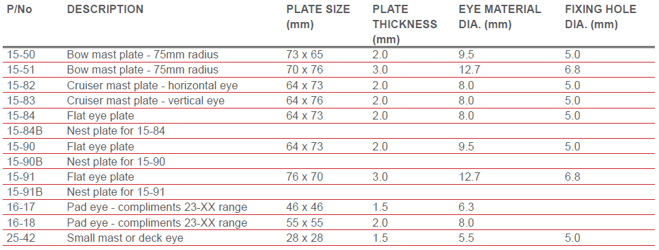 Our range of eye plates are manufactured from 316 Stainless Steel and undergo multiple machining and finishing operations to ensure they have a smooth finish and are free of damaging sharp corners and burs. All of our eye plates are then electro polished to give them as much resistance to the marine environment.